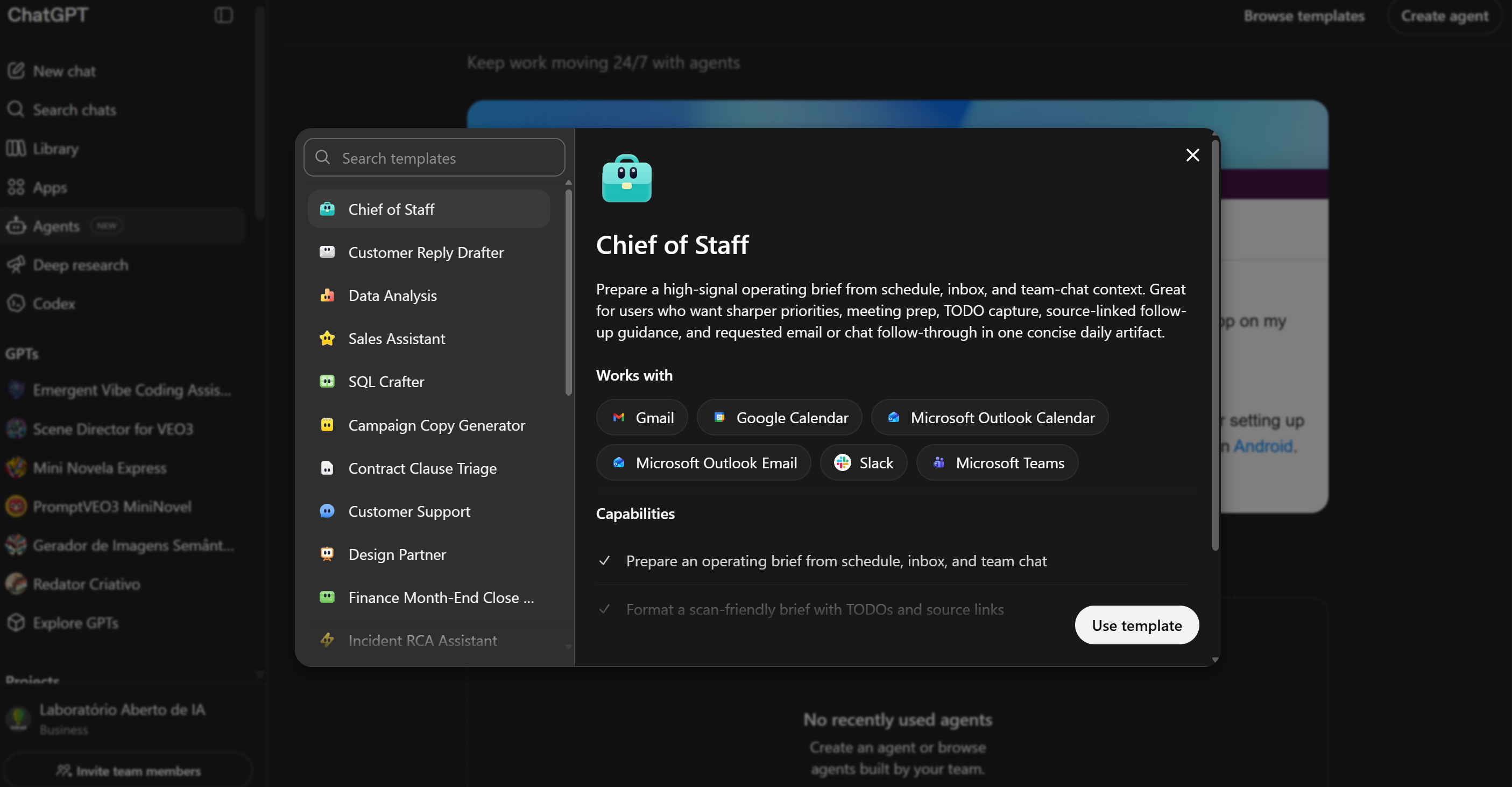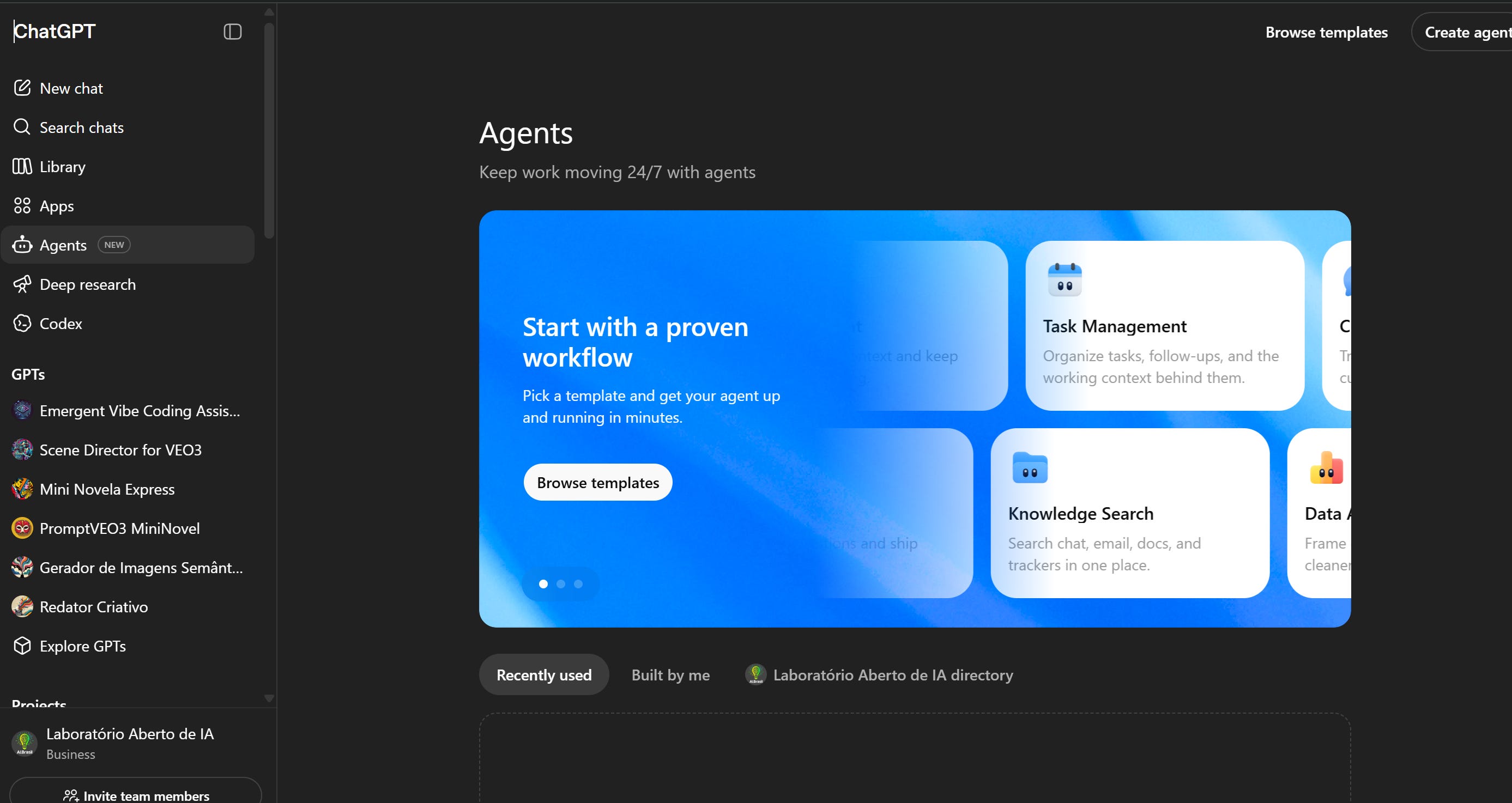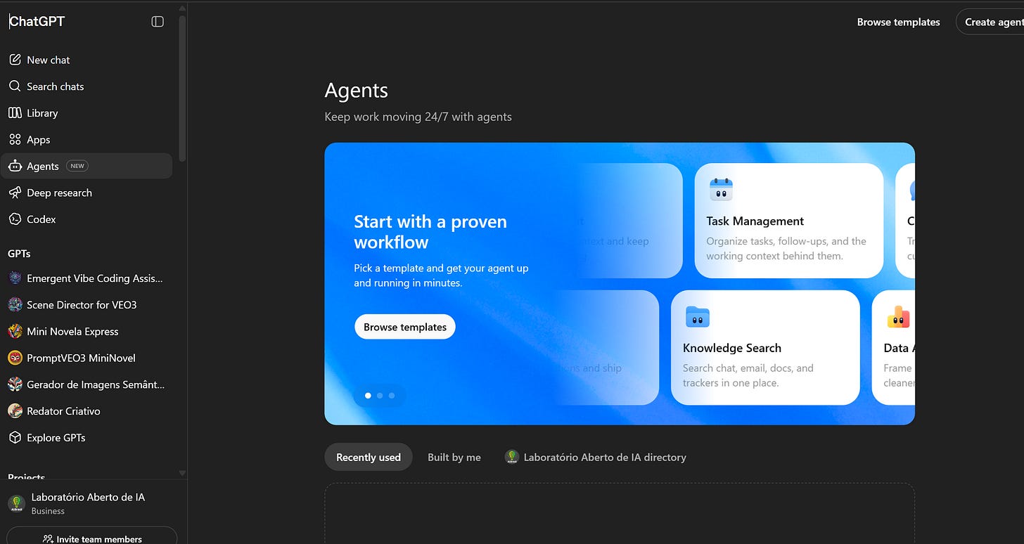 Recentemente, eu voltei ao ChatGPT e me deparo com um Agents New bem grande no menu. Não deu pra não ter uma sensação de Deja vu.