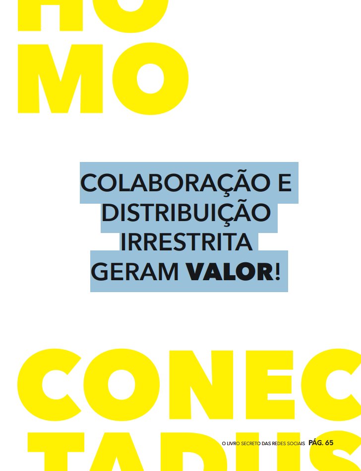 Os Homo Conectadus viveram em um período de transições. Esse perfi l cresce em uma zona nebulosa em que ainda não há muitos processos ou regras estabelecidas. A utilização da internet ainda é uma discussão embrionária, porém eles já têm acesso aos seus maravilhosos recursos. Essa geração cresce conectada com uma nova categoria de jogos conhecida como “Sandbox” e “Mundo Aberto” (Open World). Games de mundo aberto permitem aos usuários terem uma liberdade total em explorar tudo da forma que quiserem. Não existe uma linearidade pré-definida. Diferentemente dos jogos antigos, em que existia um caminho pré-definido a ser percorrido, eles podem fazer o que quiserem. Durante a febre do Second Life, as pessoas foram impactadas com um mundo totalmente colaborativo e aberto. As próprias pessoas podiam construir ferramentas e funcionalidades. Estes eram conceitos que, para a época, eram muito avançados e poucas pessoas entenderam. “Liberdade total” e “colaboração irrestrita”. Esses dois conceitos podem parecer banais, inicialmente. Porém, imagine um jovem que cresceu sem conceitos de linearidade e controle total da situação chegando ao mercado profissional. Se o Homo Digitalis não compreende como “dar as coisas de forma gratuita” pode gerar valor, o Homo Conectadus cresceu imerso neste ambiente. O Homo Conectadus entende melhor conceitos de extrema importância para a internet.