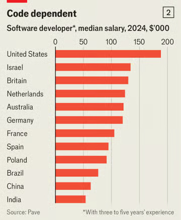 O Brasil também aparece em gráficos interessantes quando falamos do cenário de programadores. O Brasil aparece entre o TOP 3 do mundo na colaboração em repositórios no GitHub e na quantidade de Programadores ativos ficando atrás apenas da Índia e dos EUA. Porém, na questão financeira na 11º posição. Isso pode sinalizar o quanto podemos estar perdendo de talentos que preferem trabalhar para outros países do que para o Brasil.