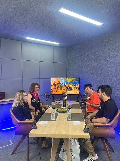 Outro marco inesquecível foi minha primeira palestra magna em um palco principal da indústria Web3: o Ethereum Brasil, realizado no Estádio do Morumbi — onde, inclusive, palestrei duas vezes este ano. Essa conquista só foi possível graças à visão e liderança de Antônio Neto. Ainda no ecossistema Ethereum, apertei a mão de Vitalik Buterin durante o ETHLatam. Talvez isso não signifique muito para quem está fora desse universo, mas para nós que acompanhamos de perto, é simbólico.
